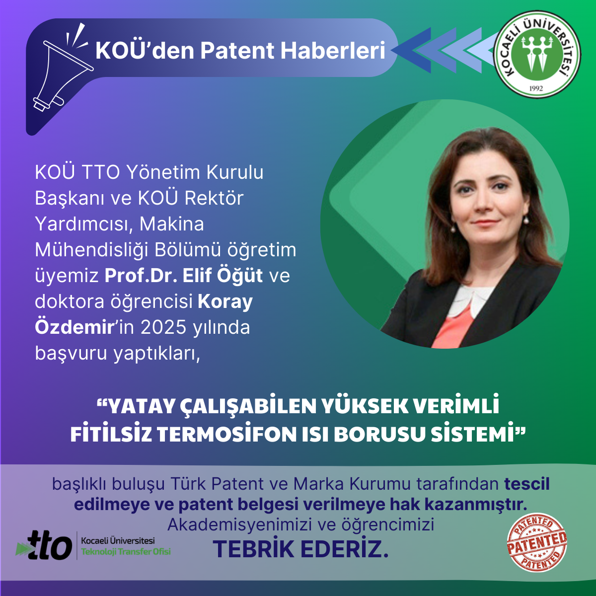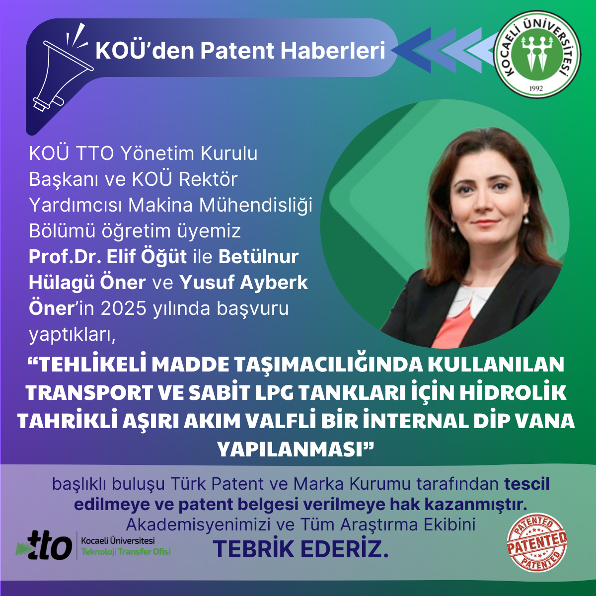 KOÜ TTO Yönetim Kurulu Başkanı ve KOÜ Rektör Yardımcısı, Makina Mühendisliği Bölümü öğretim üyemiz Prof.Dr. Elif Öğüt ve...