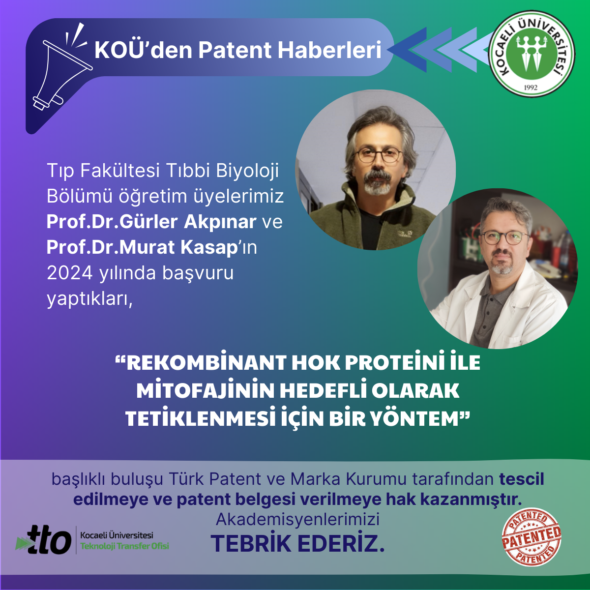 Tıp Fakültesi Tıbbi Biyoloji Bölümü öğretim üyelerimiz Prof.Dr.Gürler Akpınar ve Prof.Dr.Murat Kasap’ın 2024 yılında baş...