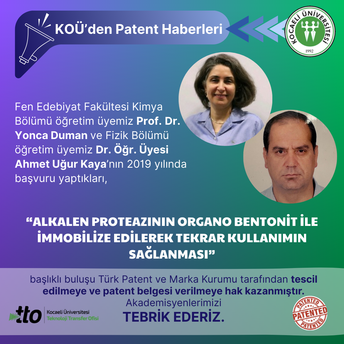 Fen Edebiyat Fakültesi Kimya Bölümü öğretim üyemiz Prof. Dr. Yonca Duman ve Fizik Bölümü öğretim üyemiz Dr. Öğr. Üyesi A...