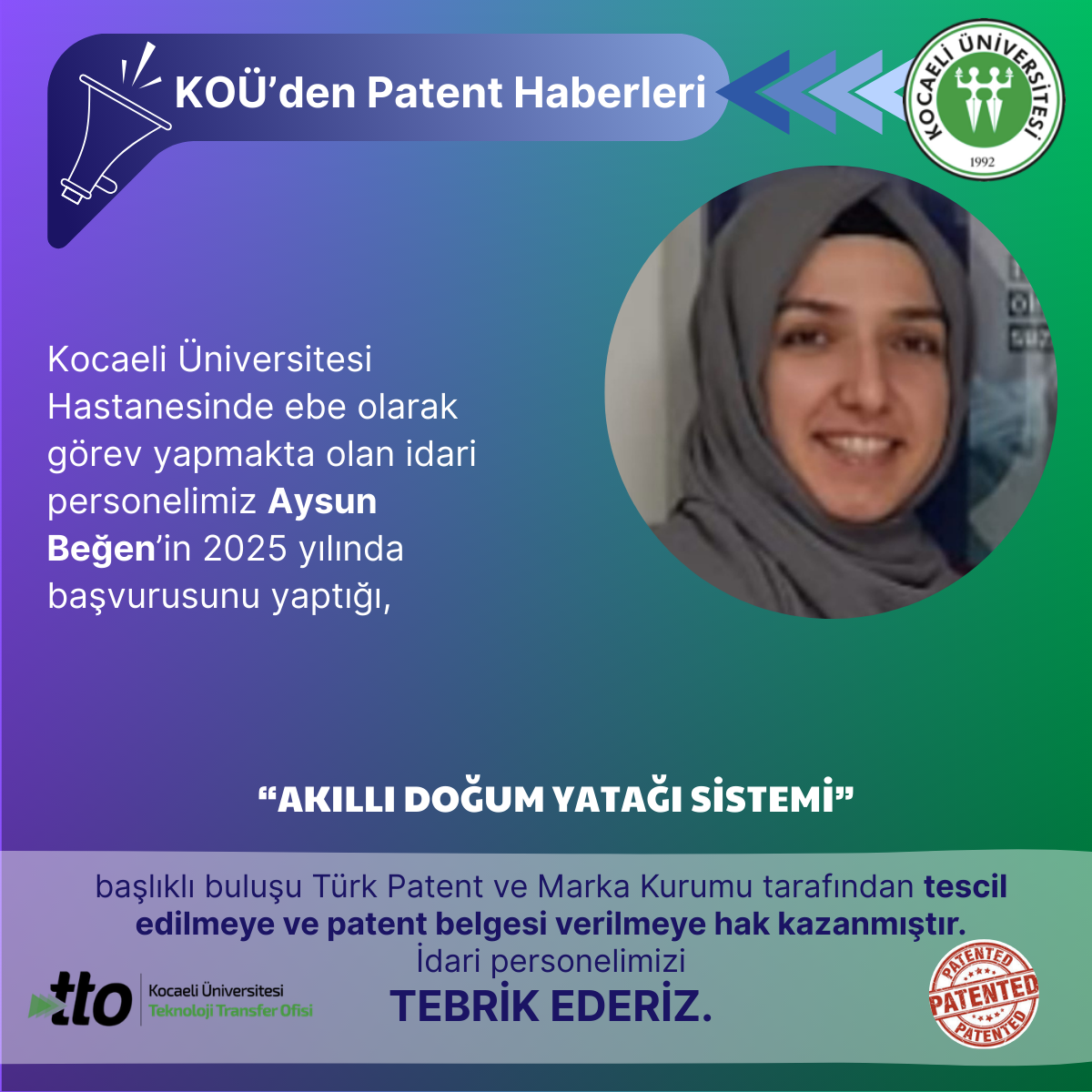 Kocaeli Üniversitesi Hastanesinde ebe olarak görev yapmakta olan idari personelimiz Aysun Beğen’in 2025 yılında başvurus...