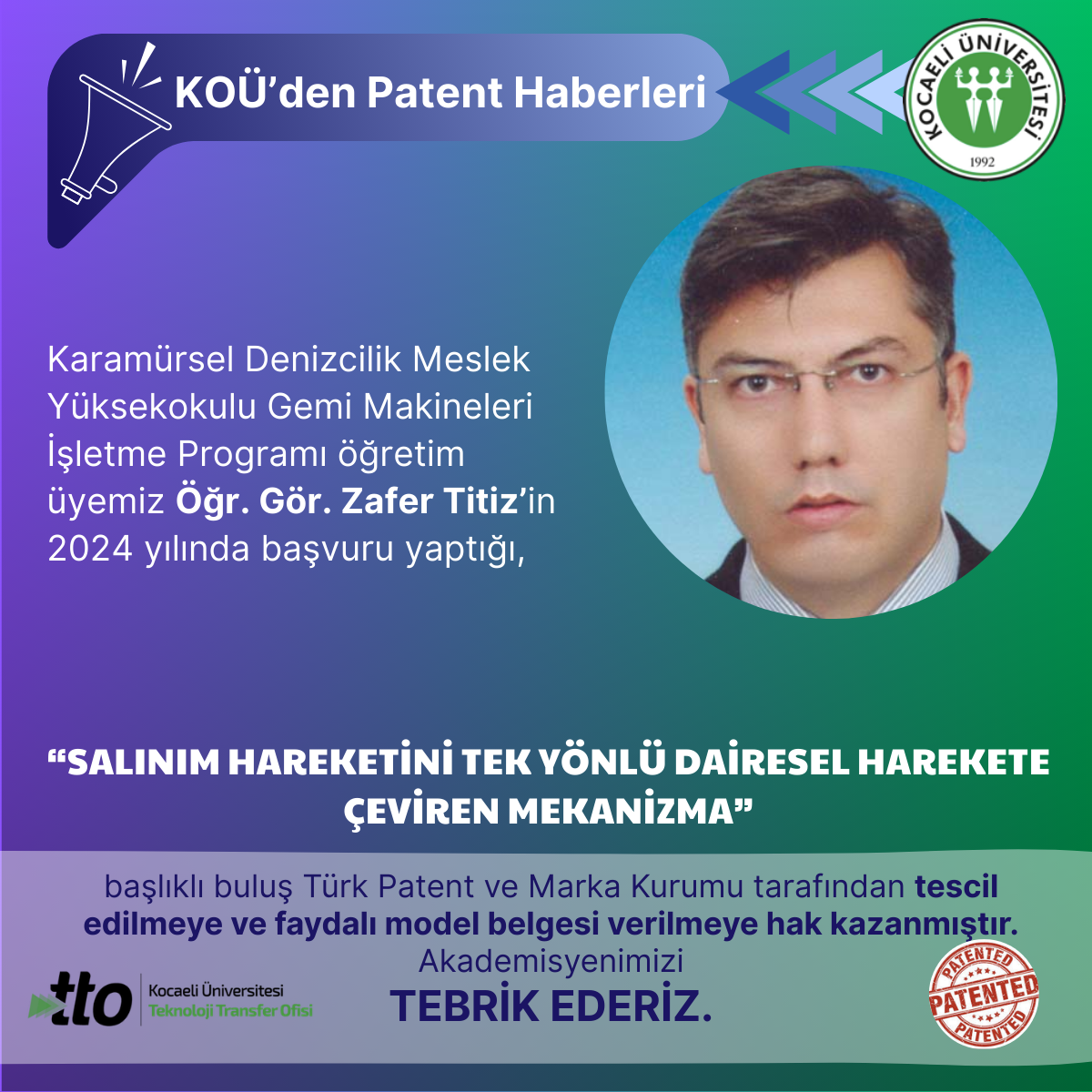 Karamürsel Denizcilik Meslek Yüksekokulu Gemi Makineleri İşletme Programı öğretim üyemiz Öğr. Gör. Zafer Titiz’in 2024 y...